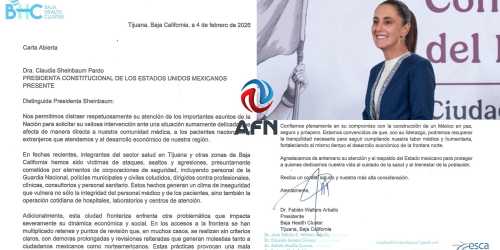 TIJUANA BC 4 DE FEBRERO DE 2026 (AFN).- Integrantes del Cluster Médico de Baja California están dirigiendo una carta a la presidenta Claudia Sheinbaum Pardo ...
