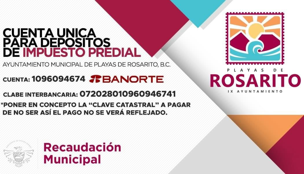 ROSARITO BC 1 DE SEPTIEMBRE DE 2022 (AFN). - Una cuenta bancaria única para realizar transferencias, fue anunciada por el Ayuntamiento que preside Aracely Brown Figueredo, además de que durante el mes de septiembre se ofrecerá la condonación del 50% en multas y del 60% en recargos de impuestos y derechos municipales.