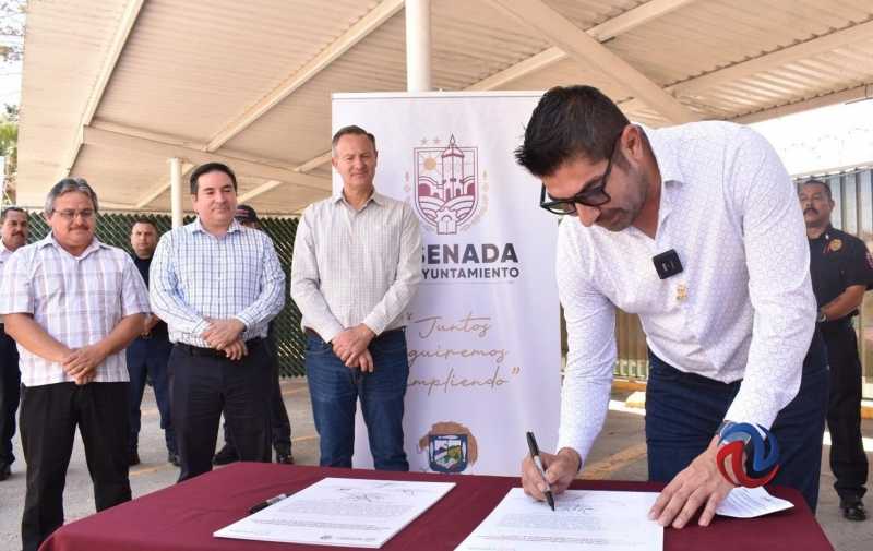 ENSENADA BC 16 DE AGOSTO DE 2023 (AFN).- Esta mañana se llevó a cabo la firma de una carta compromiso entre el XXIV Ayuntamiento de Ensenada, encabezado por el presidente municipal Armando Ayala Robles y los directivos de una empresa reconocida de la región, para albergar de manera temporal una de las estaciones de Bomberos de la ciudad.