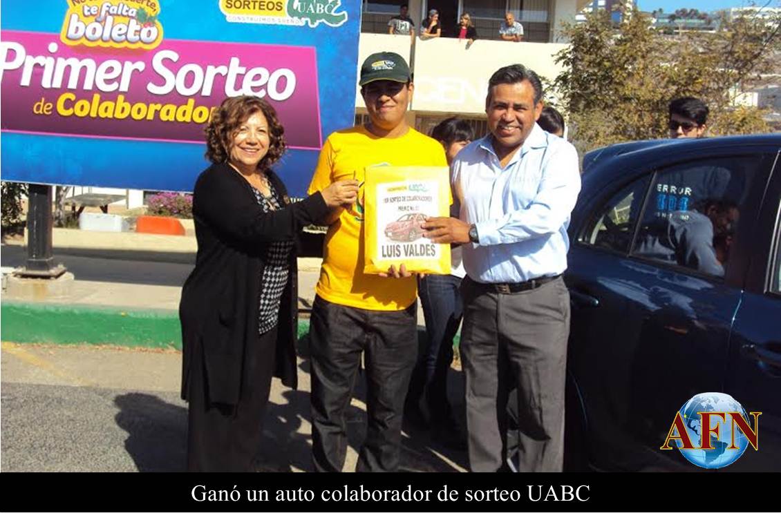 ENSENADA BC 22 DE NOVIEMBRE DE 2016 (AFN).- Un automóvil Nissan March modelo 2016 fue entregado a Luis Emmanuel Valdés Sánchez, ganador del premio principal del primer sorteo de colaboradores del 79 Sorteo Magno de la Universidad Autónoma de Baja California (UABC).