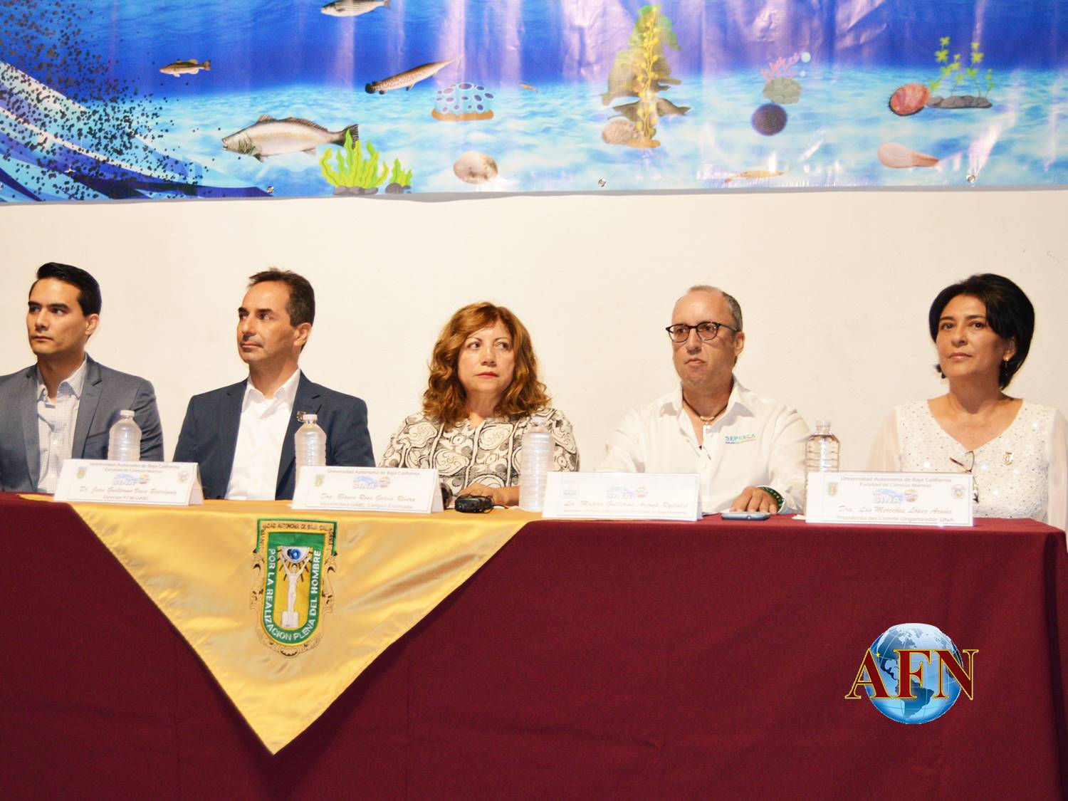 En el presídium estuvieron presentes Luz Mercedes López Acuña, presidenta del comité organizador del 14 Simposio Internacional de Nutrición Acuícola y Erick Alfonso Peterson Chinolla, director de Acuacultura de Baja California.