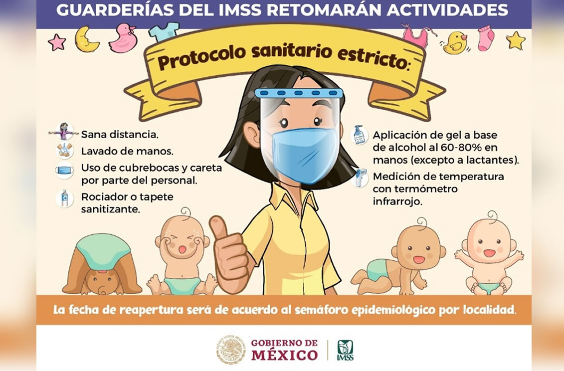 TIJUANA BC 20 DE NOVIEMBRE DE 2020 (AFN). - A partir del lunes 23 de noviembre se reanudarán en Baja California las actividades en las guarderías del Instituto Mexicano del Seguro Social (IMSS), con atención prioritaria a hijos de trabajadores que se han reincorporado a sus labores, luego de la suspensión derivada de la emergencia sanitaria por COVID-19.