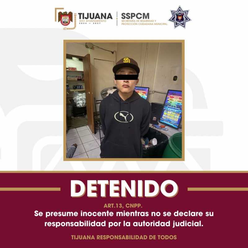 TIJUANA BC 7 DE OCTUBRE 2025 (AFN).- Swem Jefte “N” fue detenido por elementos de la policía municipal, la tarde de hoy, como presunto responsable del homicidio de un hombre que fue agredido en el interior de un establecimiento de juegos de azar clandestino, ubicado en la Zona Norte de la ciudad.
