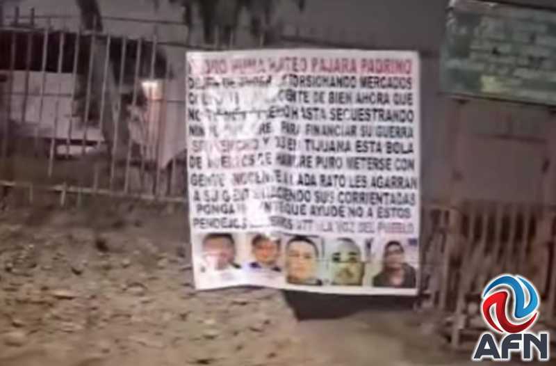 TIJUANA BC 10 DE NOVIEMBRE DE 2025 (AFN).- Un grupo de hombres armados colgaron una lona con amenazas impresas, las que se conocen como "narcomantas", en las canchas deportivas de la colonia El Rubí, frente al plantel CBTis 155.