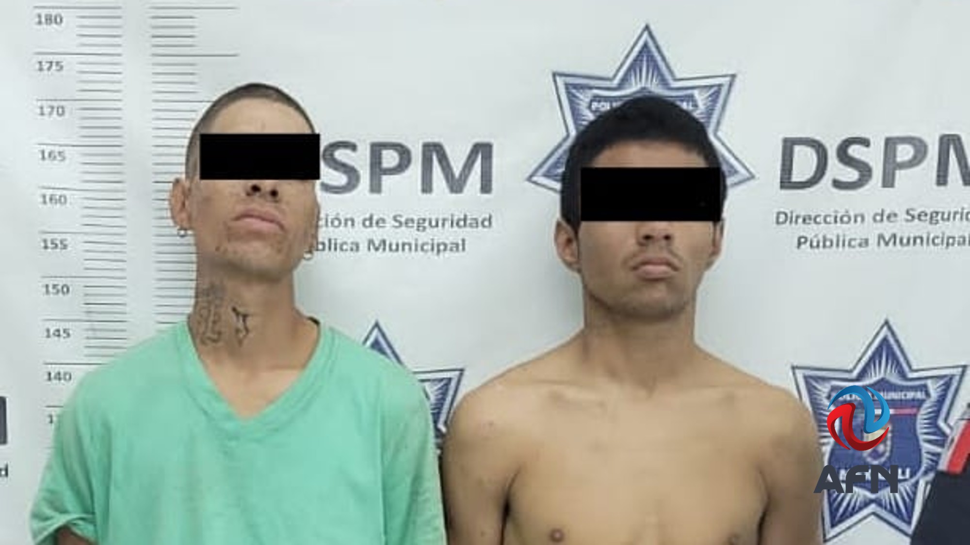 Los detenidos fueron identificados como José Alfredo “N” y Miguel Ángel “N”, ambos de 24 años, quienes fueron trasladados a la comandancia central y puestos a disposición de la autoridad correspondiente por el delito de robo con violencia a comercio.