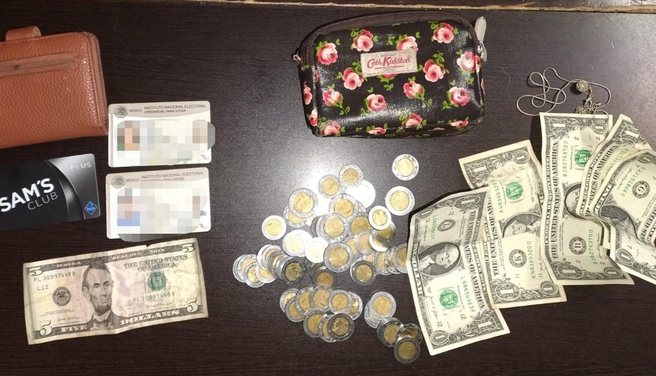 Con las características proporcionadas por la víctima, agentes municipales implementaron un operativo de búsqueda que permitió ubicar y asegurar a dos de los presuntos responsables, además de recuperar parte de los objetos robados, entre ellos dos monederos con efectivo, credenciales y una cadena plateada.