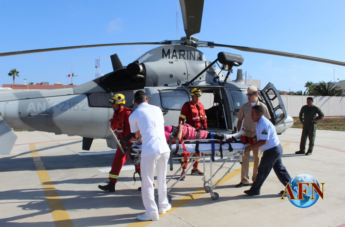 Por tal motivo, se activó el Sistema Regional de Búsqueda y Rescate, despegando el helicóptero Panther, con el fin de efectuar evacuación médica de la deportista de 44 años, quien fue trasladada al Hospital Naval de Ensenada para recibir atención médica especializada por parte de personal de Sanidad Naval.