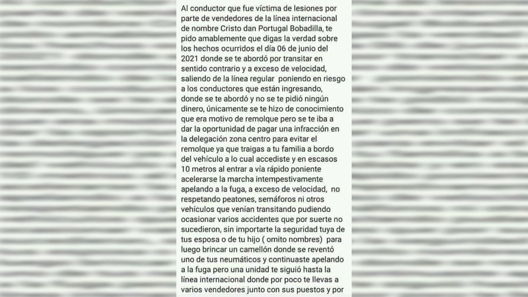 También se hizo una publicación que parece ser de elementos policiacos, porque traen el nombre de la víctima a la que identifican como Cristo Dan Portugal Bobadilla, a quien le piden “amablemente” que diga la verdad “sobre lo ocurrido el 6 de junio”.