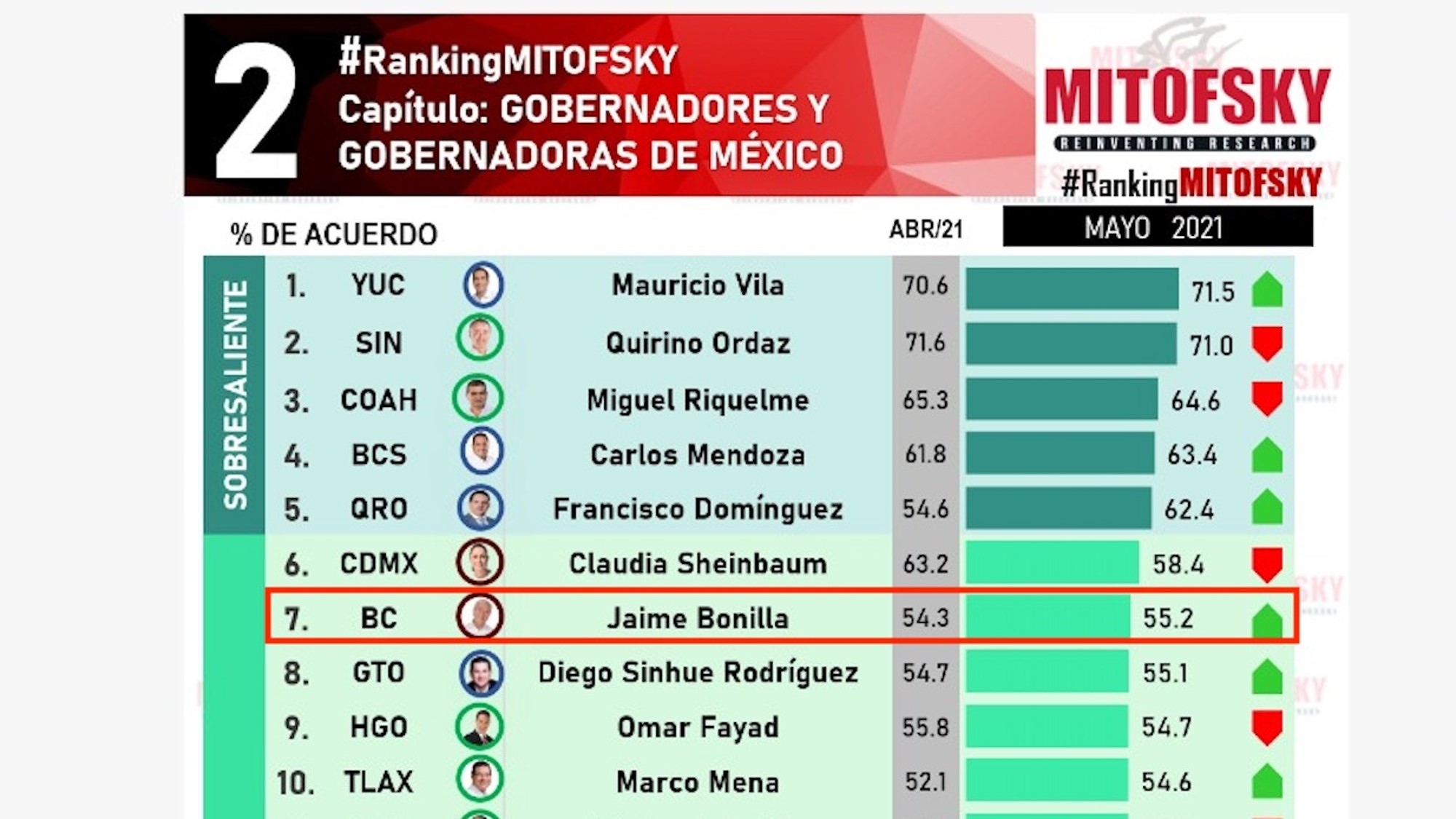 PD1.- En esta ocasión se le posicionó en el lugar número 7, y lo más curioso es que después de puros gobernadores de oposición (salvo Claudia Sheinbaum) que por eso se han mantenido en los primeros sitios.