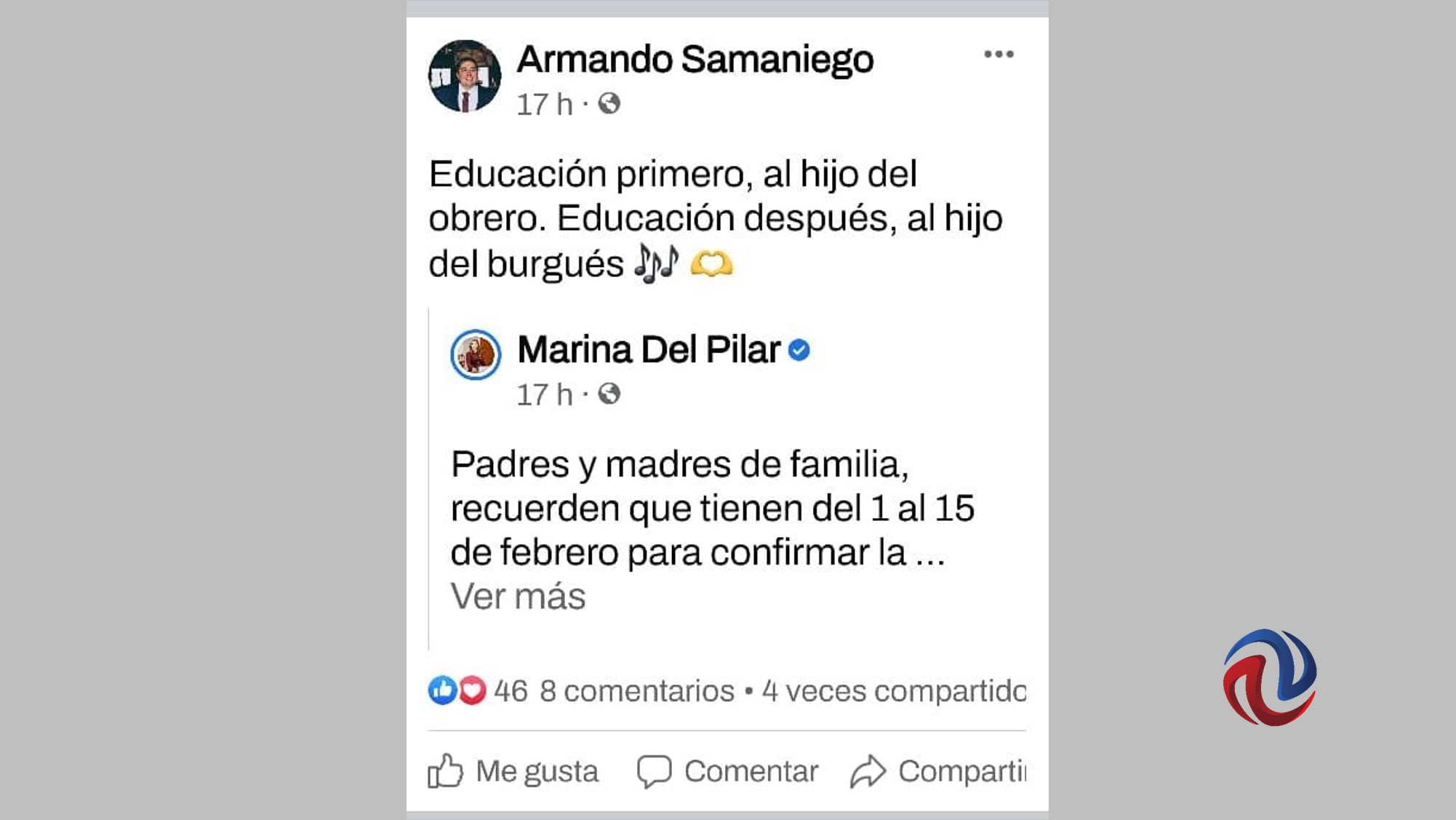 En otro de sus comunicados advierte que "educación, primero al hijo del obrero. Educación, después al hijo del burgués". Reproduce un mensaje de la gobernadora, pero al mismo tiempo olvida que en México no debe haber mexicanos de primera, ni mexicanos de segunda; ni debe haber este tipo de divisiones, ni categorías de las personas.