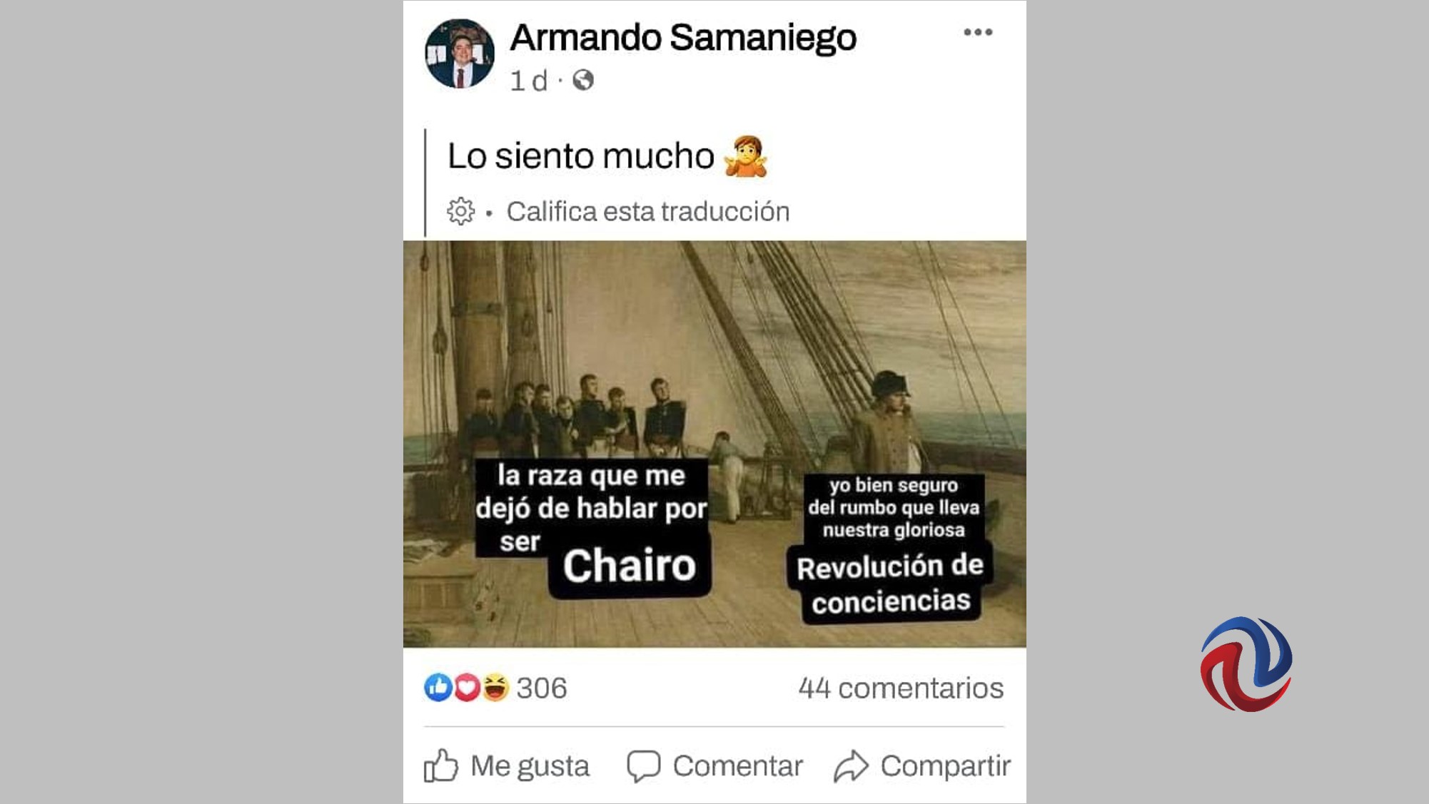 Otro mensaje decía: lo siento mucho. Y en una fotografía se veía la imagen de varias personas con el texto: "la raza que me dejó de hablar por ser chairo". Y al frente una persona en solitario que decía: "yo bien seguro del rumbo que lleva nuestra gloriosa revolución de conciencias".