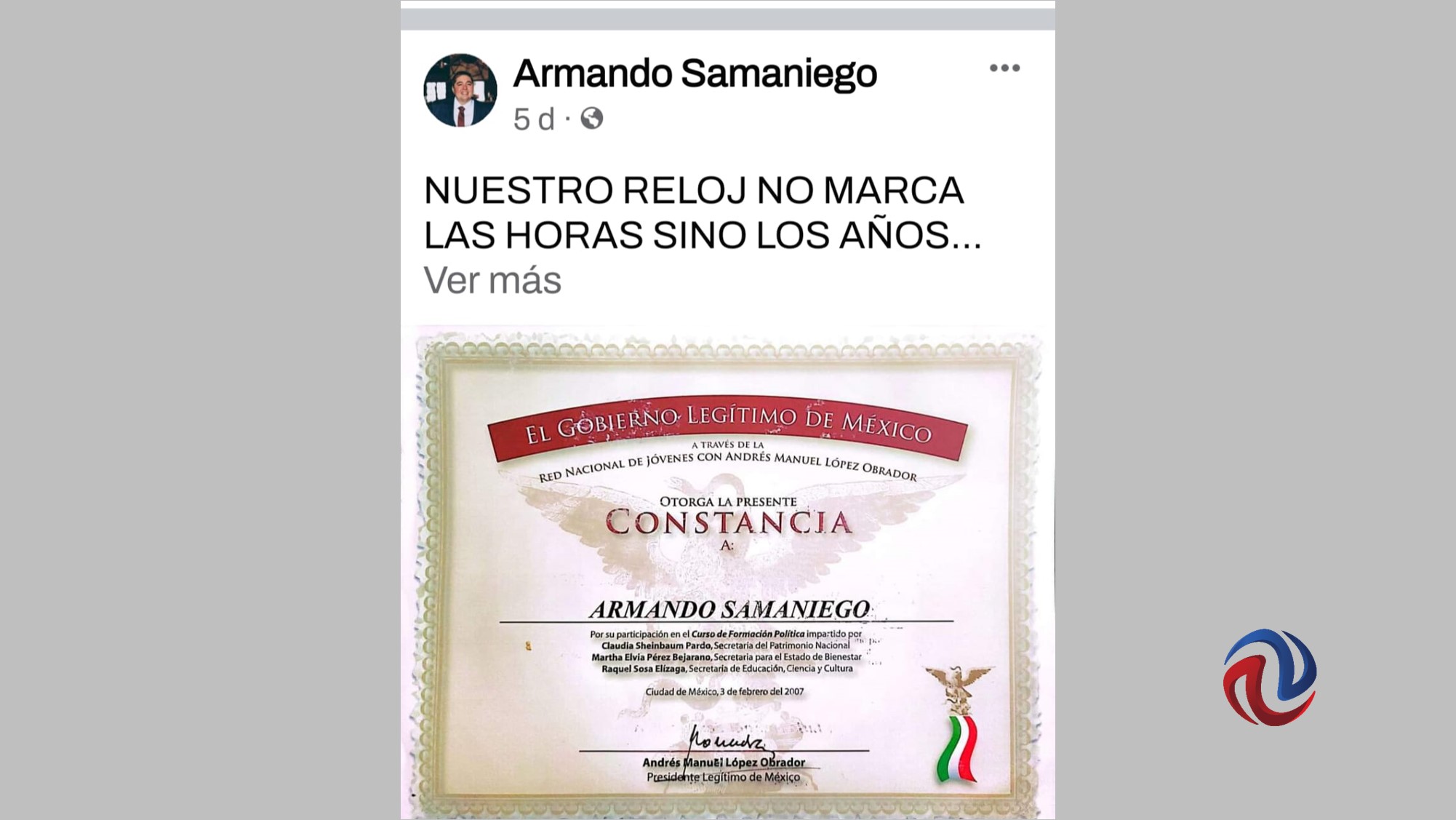 Y en lo que es un claro acto proselitista a favor de la "corcholata" mencionada, muestra la imagen de una constancia firmada por el entonces "presidente legítimo de México" y hoy presidente constitucional, que se le otorgó a través de la Red Nacional de Jóvenes.