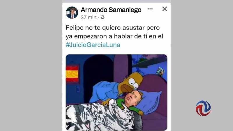 Con un meme, en el que aparece una imagen del panista con uno de los personajes de Los Simpson, Samaniego publicó un texto que decía: "Felipe no te quiero asustar, pero ya empezaron a hablar de ti en el #JuicioGarcíaLuna"