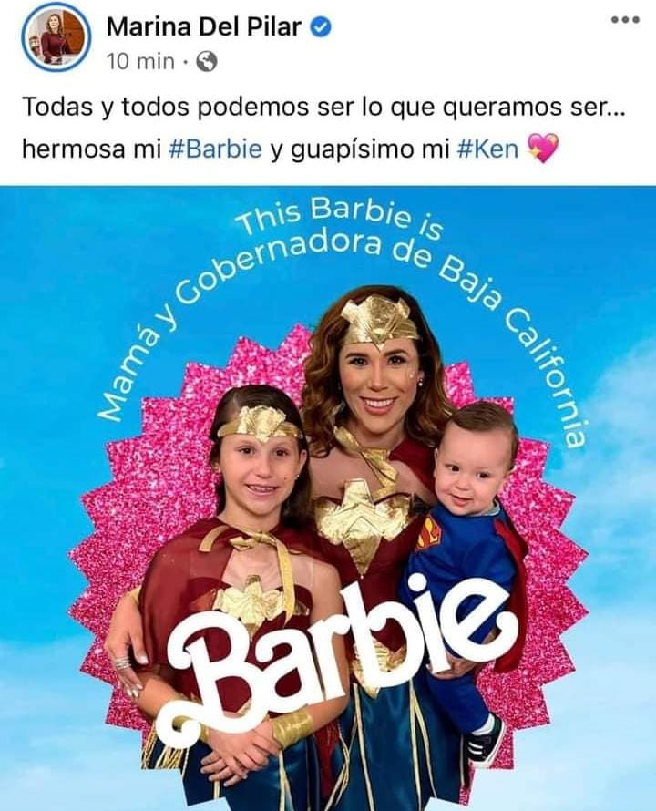 Para que no existiera duda alguna, en la fotografía en la que se ve acompañada de sus hijos, publicó la frase This Barbie is mamá y gobernadora de Baja California.