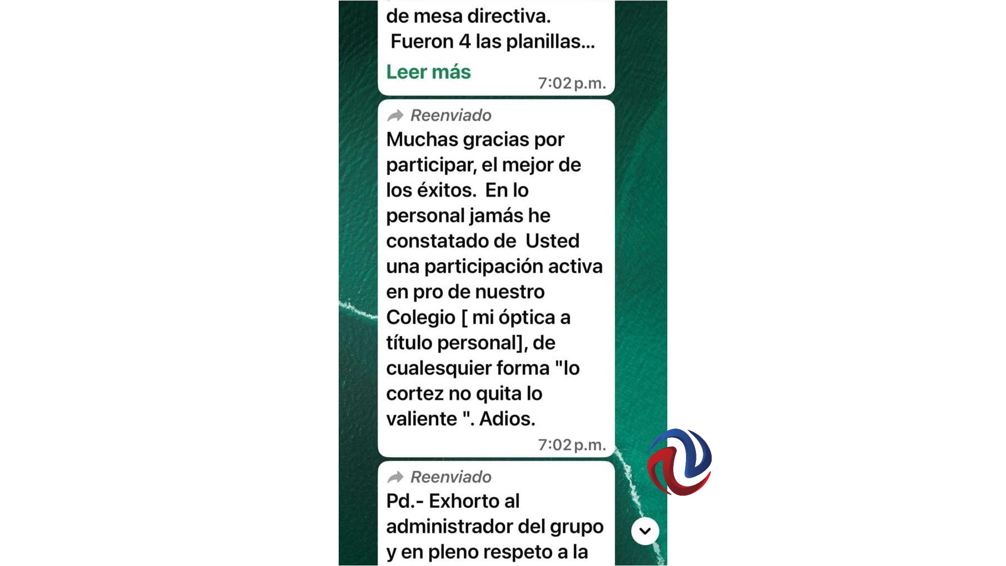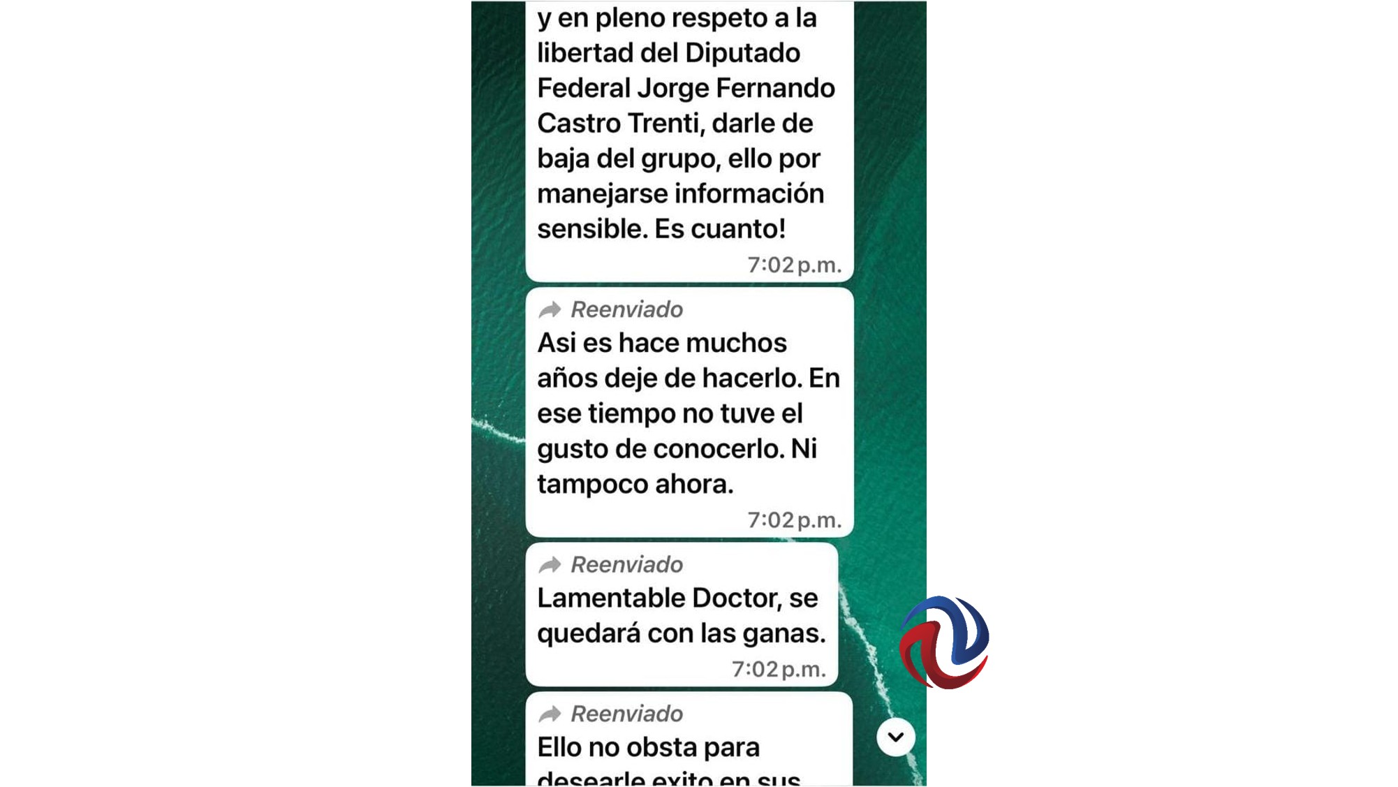 Alguien, dentro de los abogados, le comentó en ese mismo chat no haber estado históricamente de acuerdo con él y que celebraba que finalmente decidiera retirarse, y uno más pidió que se le diera de baja en el chat por lo delicado de los temas que trataban, en tanto que otro de los integrantes lamentó que esto ocurriera, diciendo que era penoso que cualquier socio se dé de baja.