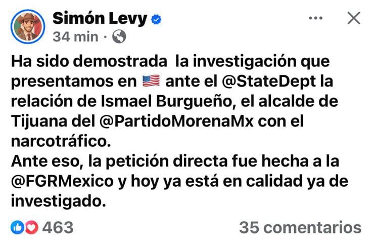 El alcalde y otros implicados en este tema (que no por eso quiere decir que sean responsables de lo que se les acusa), señalaron que la investigación nace de una denuncia anónima y por lo tanto no tiene validez, ni seriedad alguna, pero Levy reconoció haberla presentado ante el Departamento de Estado de los Estados Unidos y que este hizo la petición directa de una investigación, a la FGR del país.