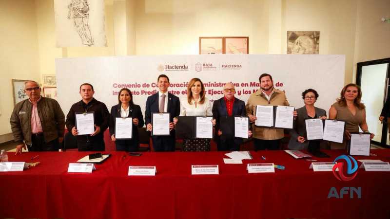 TIJUANA BC 5 DE DICIEMBRE DE 2025 (AFN).- El Gobierno del Estado y prácticamente todos los ayuntamientos de Baja California, salvo el de Mexicali, informaron en días recientes sobre la firma que se hizo entre los municipios y la administración estatal para, según esto, recibir apoyo técnico del gobierno de la entidad y así poder recuperar "cartera vencida", en el tema del impuesto predial.