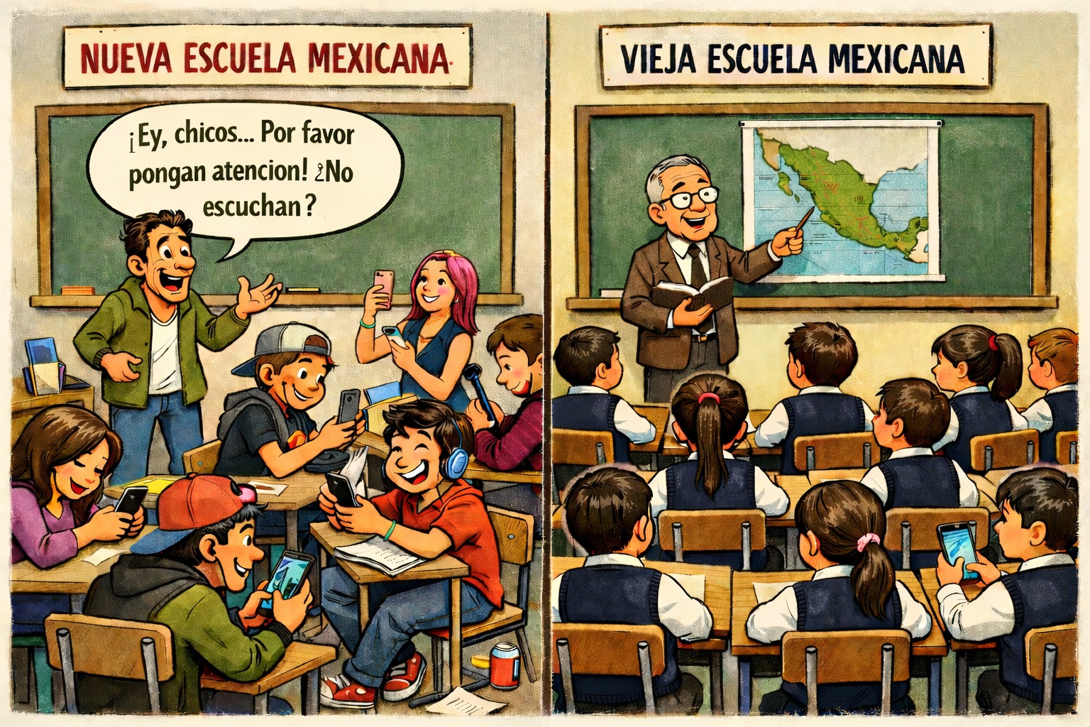 Ahora sucede que todos aquellos que aprendimos a la antigüita, o en lo que hoy sería la "vieja escuela mexicana", en realidad no aprendimos, aunque sigamos manteniendo muchos de esos conocimientos dentro de nuestra mente y presentando, aunque no les guste, un mejor comportamiento que aquellos que conforman las nuevas generaciones.