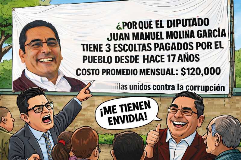 Ahora, que en esas y venidas dentro de su función particular como abogado el ahora legislador Molina García se hubiese puesto en riesgo por atender casos de los llamados de "alto impacto" que, efectivamente, traen consecuencias por parte de los "chicos malos", eso ya no es responsabilidad nuestra como ciudadanos y por lo tanto, no deberían de aprovecharse de la investidura de la que gozan, para conseguir privilegios que tendrían que cubrir con sus propios recursos, o por lo menos, dentro del nivel de Poder en que se encuentran, exigir a las autoridades que hagan lo necesario para enfrentar y combatir a los delincuentes y así desaparezcan los riesgos que, luego tenemos los ciudadanos.