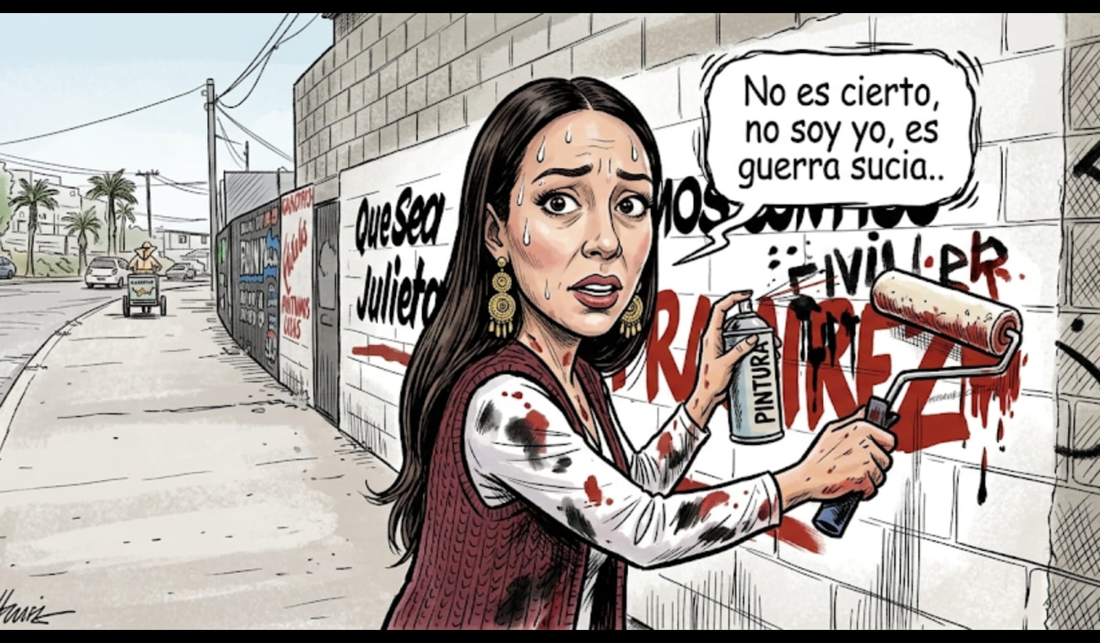 "Te reto a que encuentres una barda", cuando ha sido público y notorio que por todo el Estado estuvieron (y están) pintando varias de estas con la leyenda de "Julieta, la mera mera" y otras frases más, que en su momento aprovechó porque le gustaron y le sirvieron, sin salir a deslindarse ni a denunciar ese "juego sucio" del que ahora se dijo víctima.