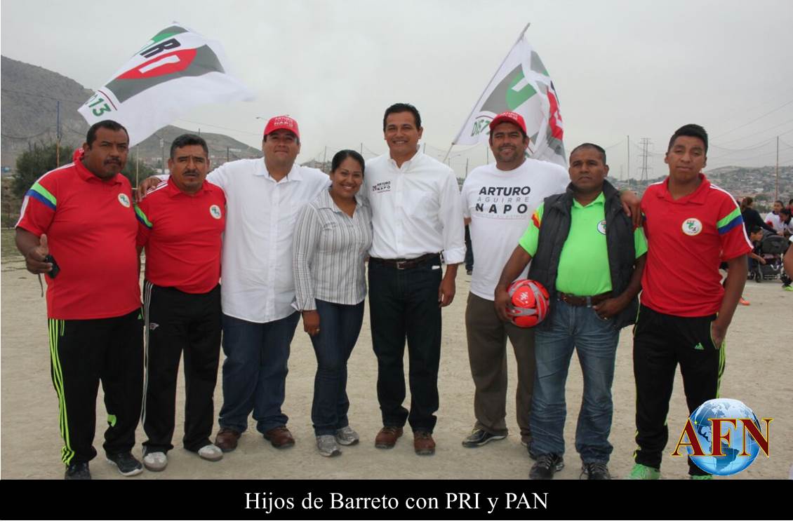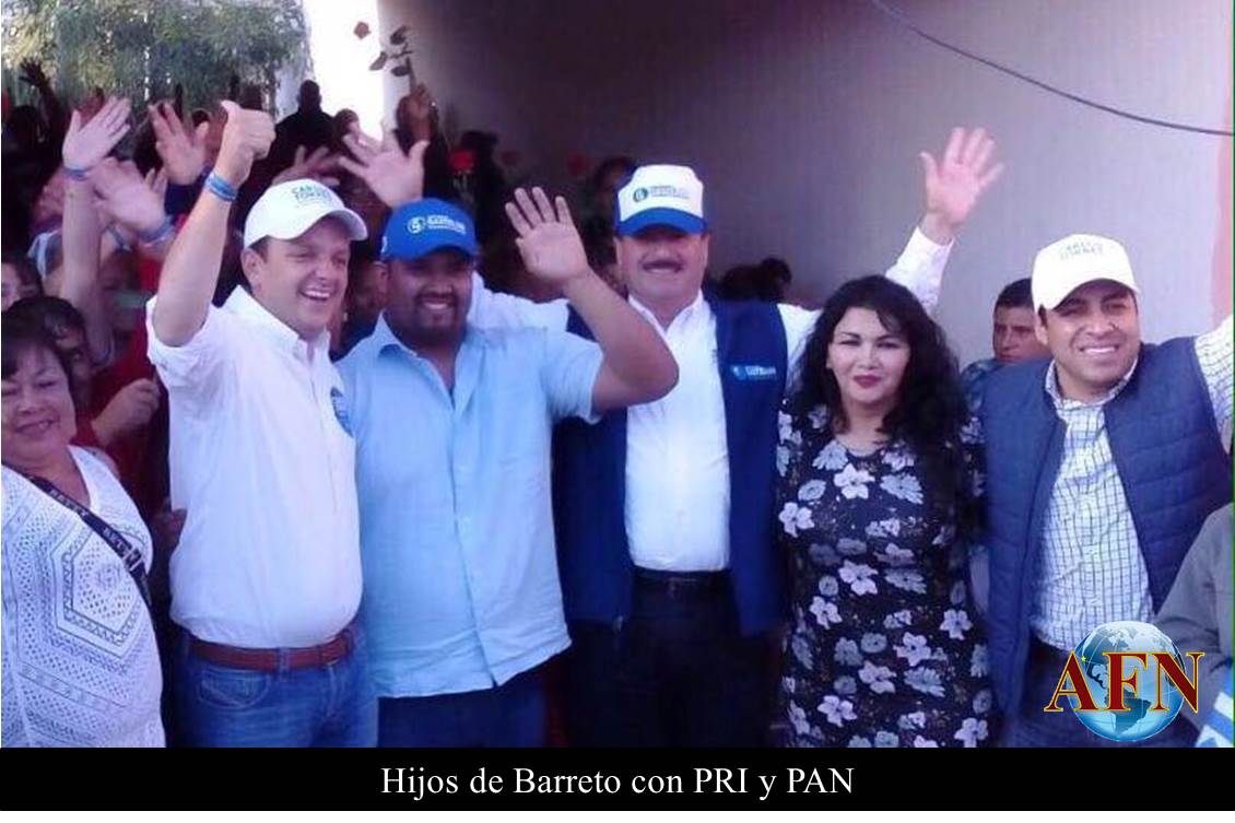 Mientras que en el PAN anunciaron en días recientes que Gregorio Barreto, hijo del extinto transportista y ex diputado del mismo nombre se sumaba a las campañas de Juan Manuel Gastélum Buenrostro por la alcaldía y Carlos Torres Torres, por la diputación del 13, el ex delegado de La Presa y candidato priísta, se dejó ver ayer con otros dos de los hijos del ex dirigente popular.