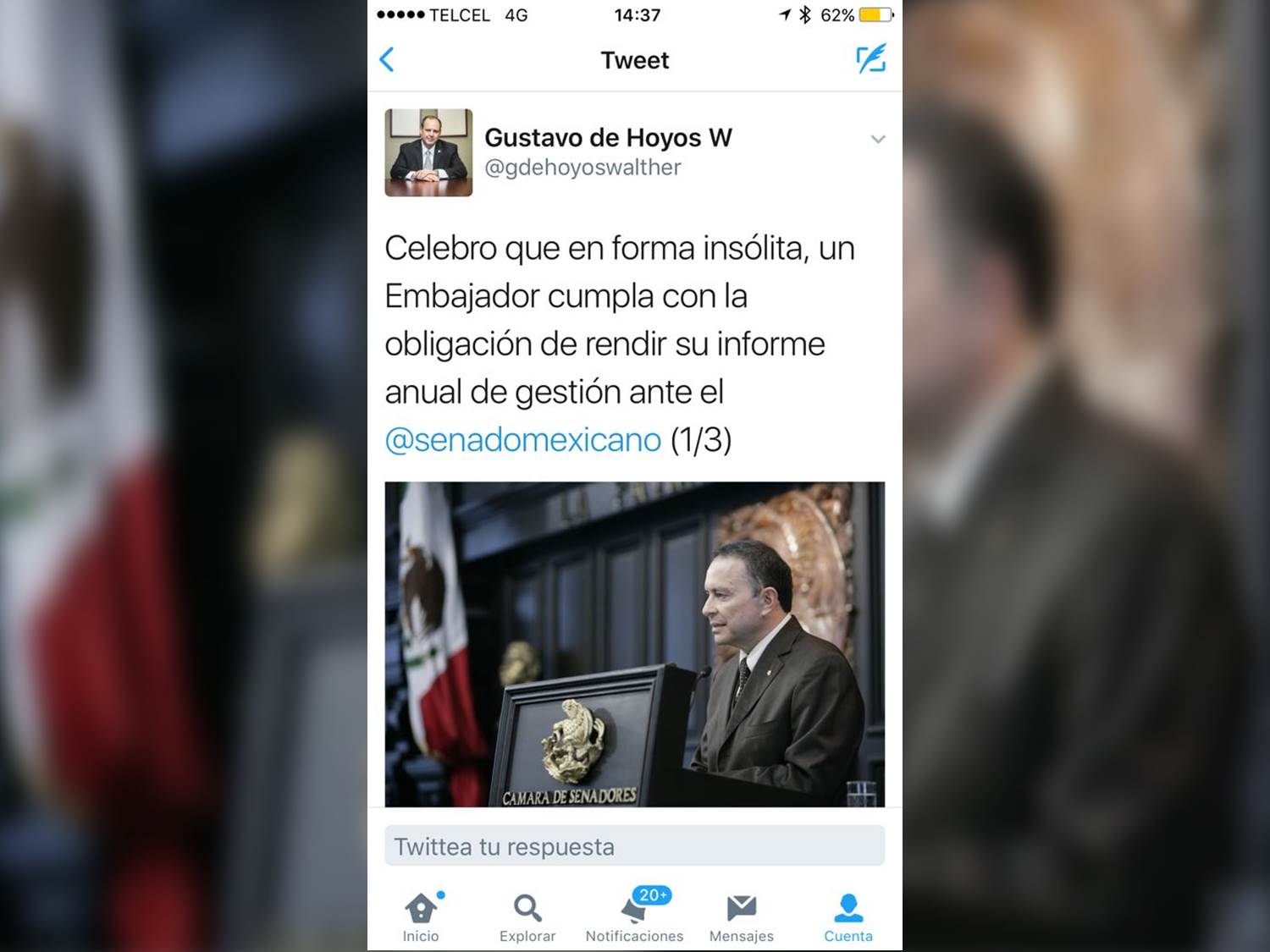 PD4.- El presidente nacional de Coparmex Gustavo de Hoyos Walther aplaudió el hecho de que el todavía embajador de México en Argentina Fernando Castro Trenti presentara un informe de sus actividades, y sugirió que esto debería de ser tomado en cuenta por los legisladores federales al momento de nombrar a sus representantes del servicio diplomático.