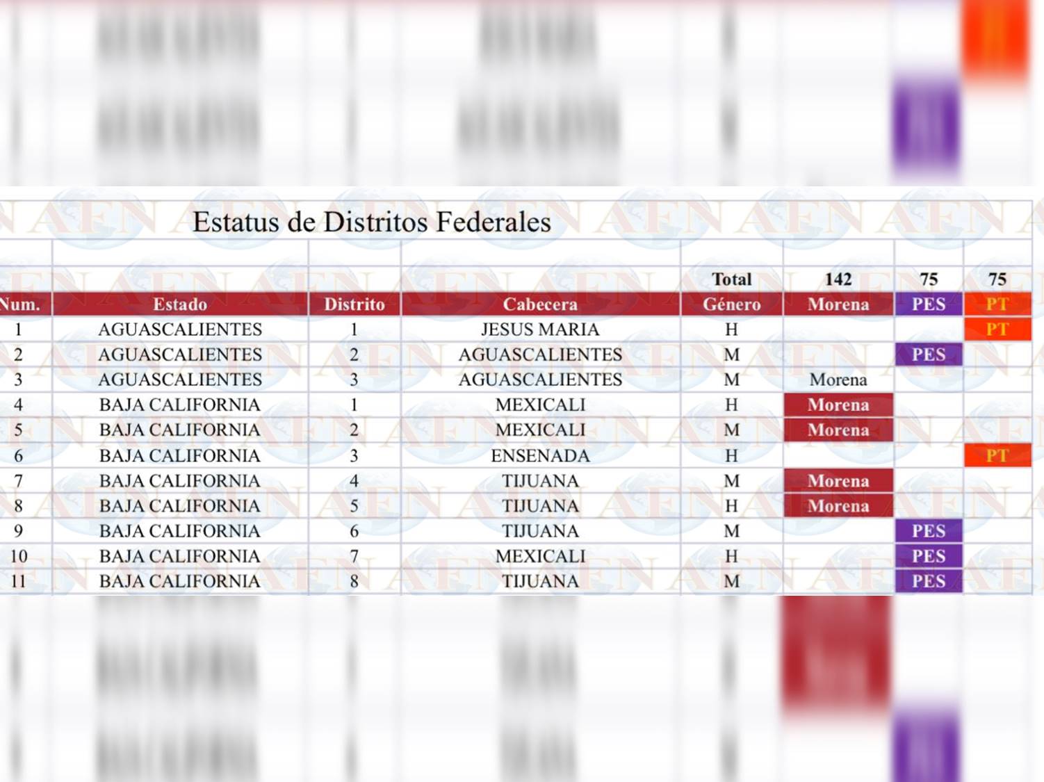 Según el “estatus” que presenta la repartición hecha por esa Alianza, los distritos de Baja California quedarán de la manera siguiente: