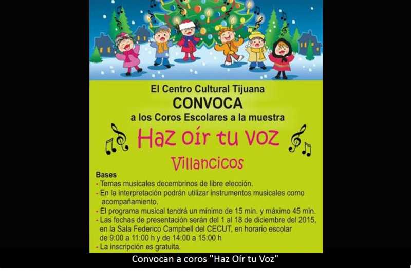 TIJUANA BC 4 DE DICIEMBRE DE 2015.- Una nutrida participación de coros escolares se registra desde el pasado 1 de diciembre en la Muestra de Villancicos Haz Oír tu Voz convocada por el Centro Cultural Tijuana a través de la Gerencia de Promoción Escolar con el objetivo de promover esta tradición decembrina entre las nuevas generaciones.