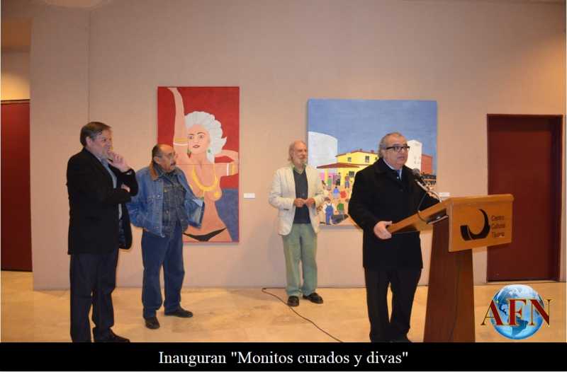 TIJUANA BC 24 DE ENERO DE 2016.- Con piezas de trazo íntimo, con personajes y paisajes coloridos, entrañables para el autor, se inauguró la muestra Monitos curados y divas del artista Gabriel Adame el pasado viernes en el Vestíbulo de la Sala de Espectáculos del Centro Cultural Tijuana.