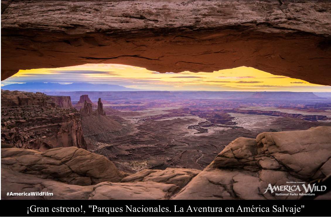 Parques nacionales, la aventura en América Salvaje transporta al espectador sobre los cañones de roca roja, los imponentes geicers, los picos de las montañas escarpadas cubiertas de nieve y a los calurosos pantanos del Sur de Estados Unidos, todos estos parques legendarios de ese país.