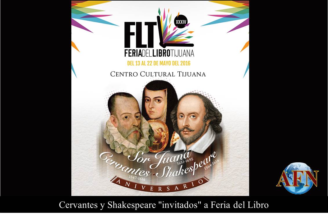 TIJUANA BC 23 DE ABRIL DE 2016 (AFN).- A 400 años de su muerte, acaecida el 23 de abril de 1616, la vida y obra de los escritores Miguel de Cervantes Saavedra y William Shakespeare, serán motivo de análisis por parte de reconocidos literatos y académicos, en el marco de la edición 34 de la Feria del Libro de Tijuana, programada del 13 al 22 de mayo en el Centro Cultural Tijuana (Cecut).