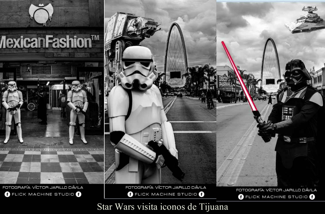 TIJUANA BC 3 DE MAYO DE 2016 (AFN).- En celebración al aniversario de la saga de películas “Star Wars”, este miércoles 4 de mayo se presentará la exposición fotográfica “En una Tijuana muy, muy lejana” en la Galería Urbana del Instituto Municipal de Arte y Cultura (IMAC), un conjunto de fotografías relativas a esta icónica serie de películas, pero “tijuanizadas”, a decir del autor, Víctor Jarillo Dávila.