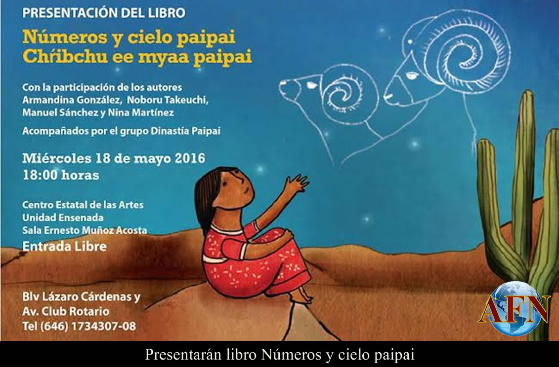 ENSENADA BC 16 DE MAYO DE 2016 (AFN).- Este miércoles 18 de mayo, en la sala Ernesto Muñoz Acosta del Centro Estatal de las Artes Ensenada (CEART), a las 18:00 horas, se presentará el libro Números y cielo paipai, Chribchu ee myaa paipái.