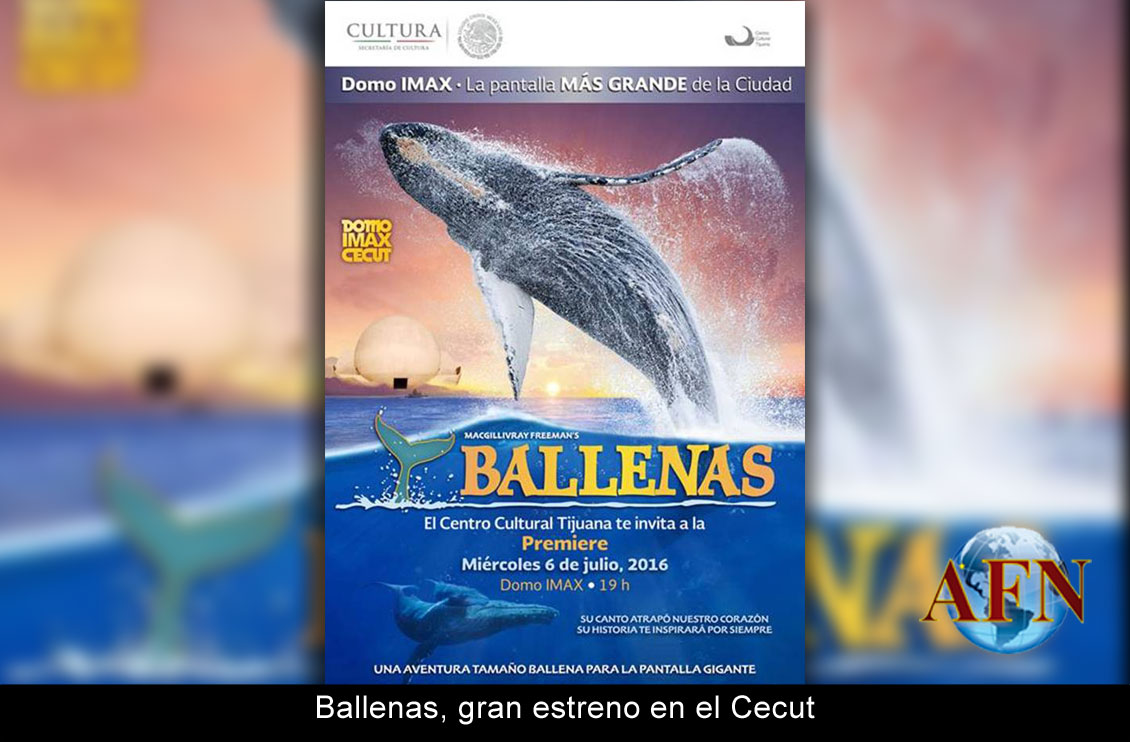 TIJUANA BC 5 DE JULIO DE 2016 (AFN).-El Centro Cultural Tijuana (Cecut) invita a la ciudanía a disfrutar su Premiere MACGILLIVRAY FREEMAN’S BALLENAS, que estará exhibiéndose en el Domo IMAX, la pantalla más grande de la ciudad.