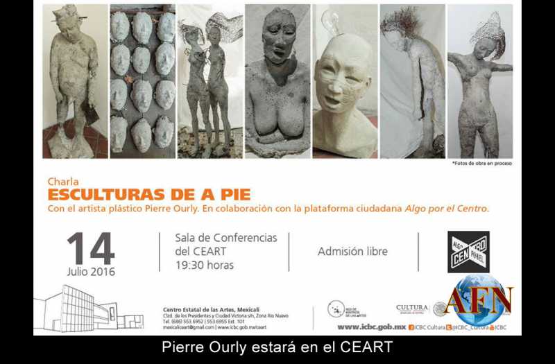 El jueves 14 de julio a las 19:30 horas se realizará la charla “Esculturas de a pie”, en la Sala de Conferencias del CEART Mexicali, con admisión libre. Participan Pierre Ourly en colaboración con la plataforma ciudadana “Algo por el Centro”, un grupo comprometido con la ciudad que se encarga de planear, desarrollar y ejecutar proyectos de diversa índole para consolidar la Zona Centro de Mexicali; quienes abordarán la escultura como medio para generar un diálogo entre las personas, el espacio y el arte.