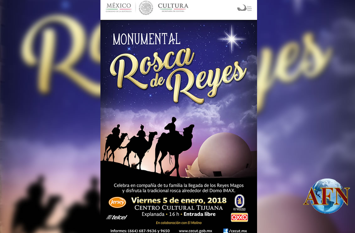 TIJUANA, BC 30 DE DICIEMBRE 2017 (AFN).- El Centro Cultural Tijuana invita a la comunidad en general a participar en la degustación de La Monumental Rosca de Reyes el próximo 5 de enero, alrededor del Domo IMAX a las 16:00 horas.