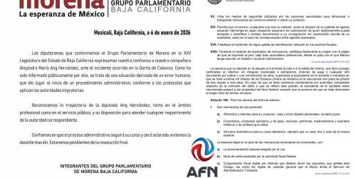 AFN POLÍTICO Dora Elena Cortés [email protected] Twitter: @DoraElenaAFN TIJUANA BC 7 DE ENERO DE 2026 (AFN).- Ya ...