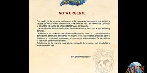 TIJUANA BC 28 MAYO 2016 (AFN).- De última hora, el comité organizador de la séptima edición del Rosarito Art Fest informa ...
