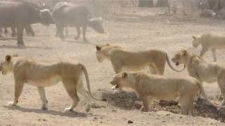 MÉXICO 10 ABRIL 2018 (LA SILLA ROTA).- Una manada de 500 búfalos se defendió exitosamente del ataque de varias leonas en el parque ...