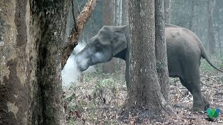 MÉXICO 27 MARZO 2018 (LA SILLA ROTA).- Un elefante fue captado exhalando humo en una reserva ecológica en la India, sin embargo se ...