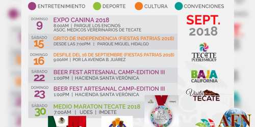 TECATE BC 29 DE AGOSTO DE 2018 (AFN).- Una serie de actividades tendrán lugar este mes de septiembre para festejar el “mes ...
