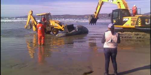 ENSENADA BC 30 DE NOVIEMBRE DE 2015 (AFN).- Un enorme ballenato quedó varado esta mañana en la playa conocida como ...