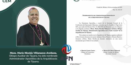 TIJUANA BC 4 DE NOVIEMBRE DE 2025 (AFN).- El obispo auxiliar de la Arquidiócesis de Tijuana, Mario Nicolás Villanueva Arellano, ...