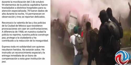 * Darán "bono de compensación" a oficiales atacados en CDMX. * Hubo 350 encapuchados; reportaron un detenido por ...