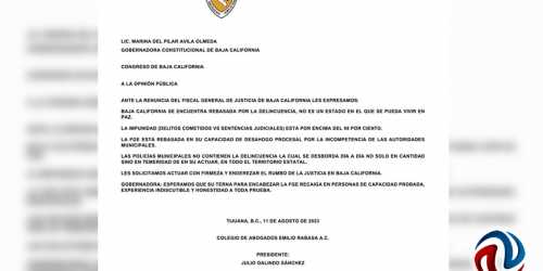 TIJUANA BC 11 AGOSTO DE 2023(AFN).- El Colegio de Abogados "Emilio Rabasa" solicitó a la Gobernadora del Estado, Marina ...
