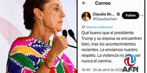 * "La violencia no debe ser nunca el camino", posteó la presidenta. CIUDAD DE MÉXICO CDMX 25 DE ABRIL DE 2026 (AFN).- ...