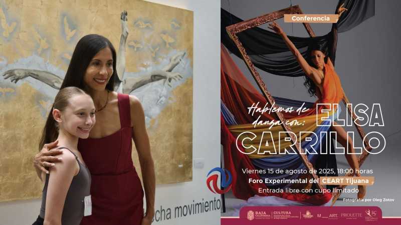TIJUANA BC 13 DE AGOSTO DE 2025 (AFN).- La bailarina mexicana Elisa Carrillo, reconocida internacionalmente por su trayectoria en el ballet clásico, ofrecerá la conferencia “Hablemos de danza” el viernes 15 de agosto a las 18:00 horas en el Centro Estatal de las Artes (CEART) Tijuana.