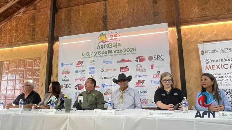 MEXICALI BC 25 DE FEBRERO DE 2026 (AFN).- AgroBaja celebra su 25 aniversario de creación con el regreso de empresas hortícolas y mayores facilidades para productores agrícolas de la zona costa, además de que la exposición está consolidada en el país como la segunda más importante del sector agrícola y pesquero, afirmó Arturo Elías Lizárraga.