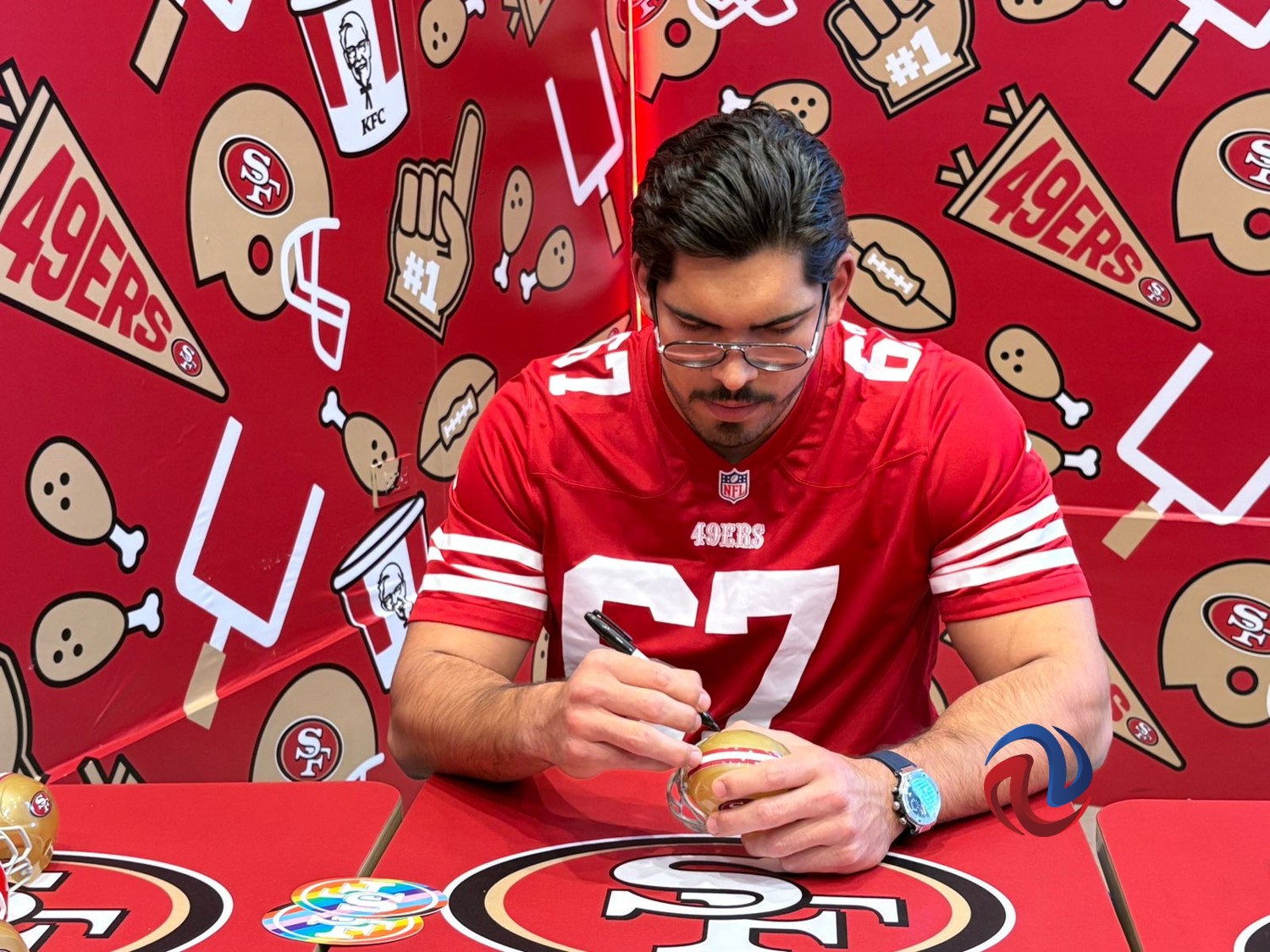 CIUDAD DE MÉXICO 7 DE FEBRERO DE 2025 (AFN).- El tacleador mexicano de los 49 de San Francisco, Isaac Alarcón, estuvo de visita en la Ciudad de México, como parte de la fiesta de los fanáticos de NFL, donde ofreció algunas charlas y firmó autógrafos.