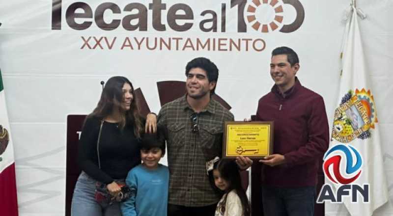 Durante su conferencia semanal de este jueves, el munícipe entregó el reconocimiento a Heras al ser considerado como un destacado representante de Tecate a nivel internacional, tras consagrarse como campeón de la última edición de la Serie del Caribe con “Los Charros de Jalisco”.